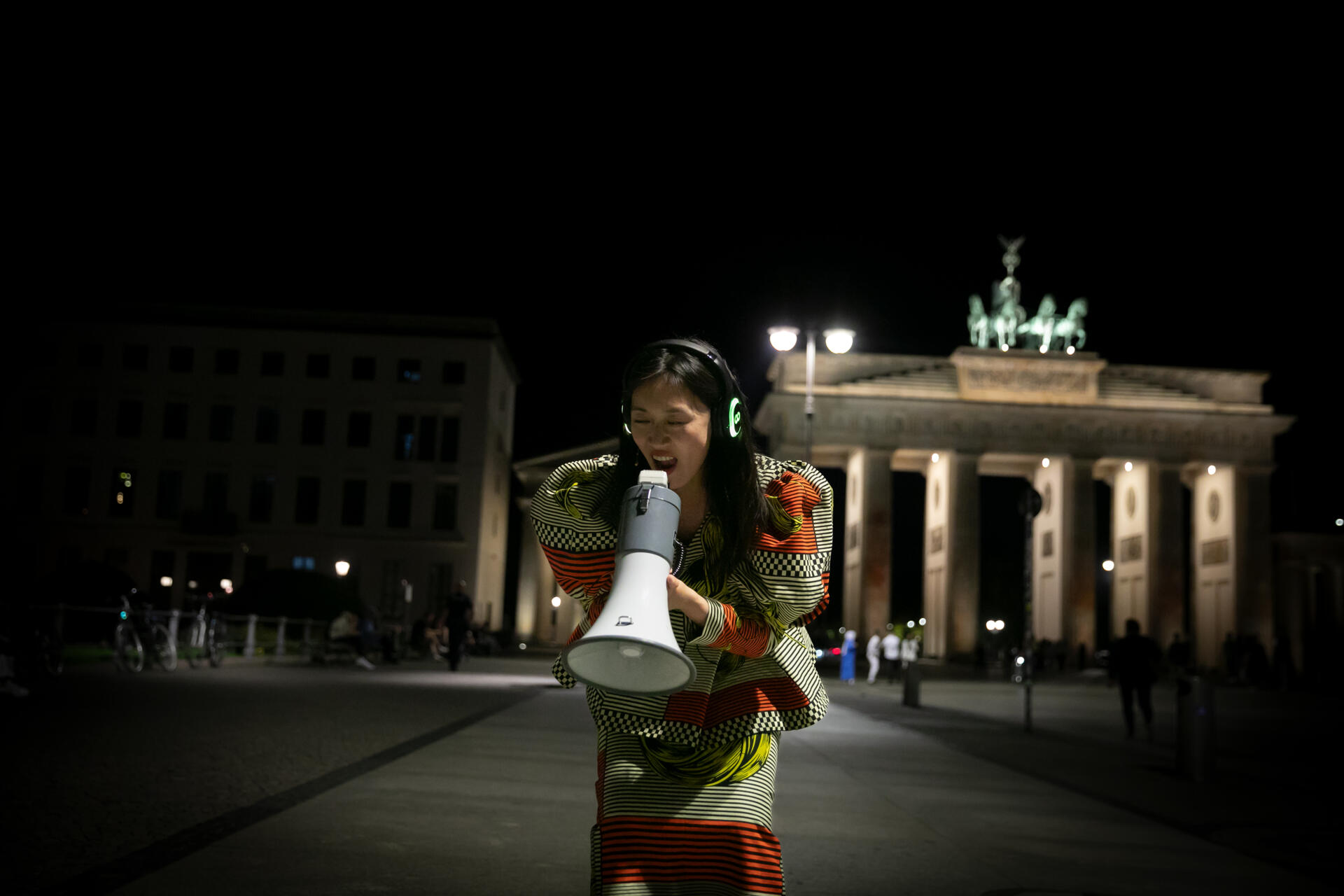 Opern Call is an opera installation for the glass façade of the Akademie der Künste at Pariser Platz as well as for the entire premises of the Kölner Philharmonie. Freely accessible, the project includes twelve premieres by different composers who reconsider the 3rd and unfinished act of the opera Moses und Aaron by Arnold Schönberg.