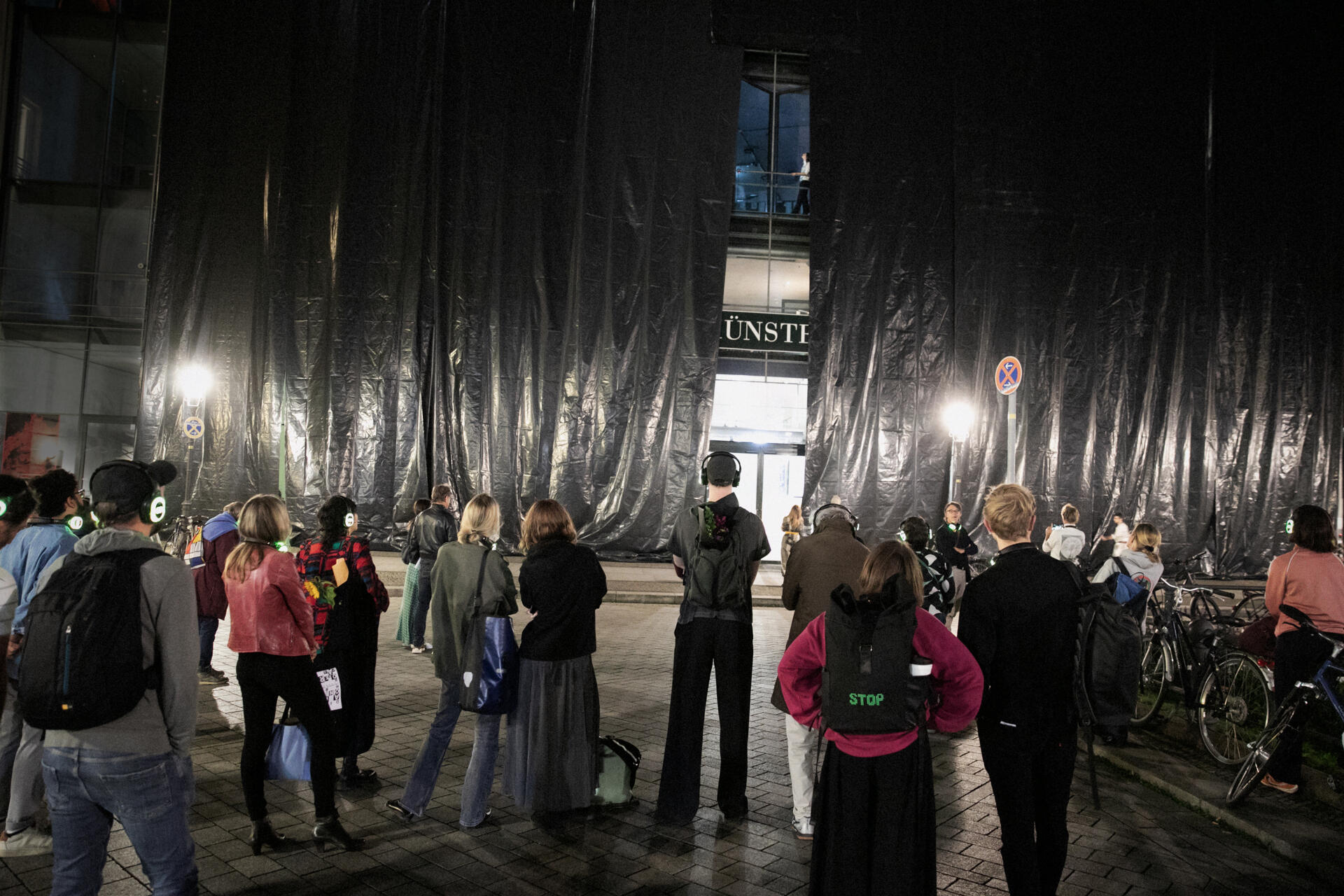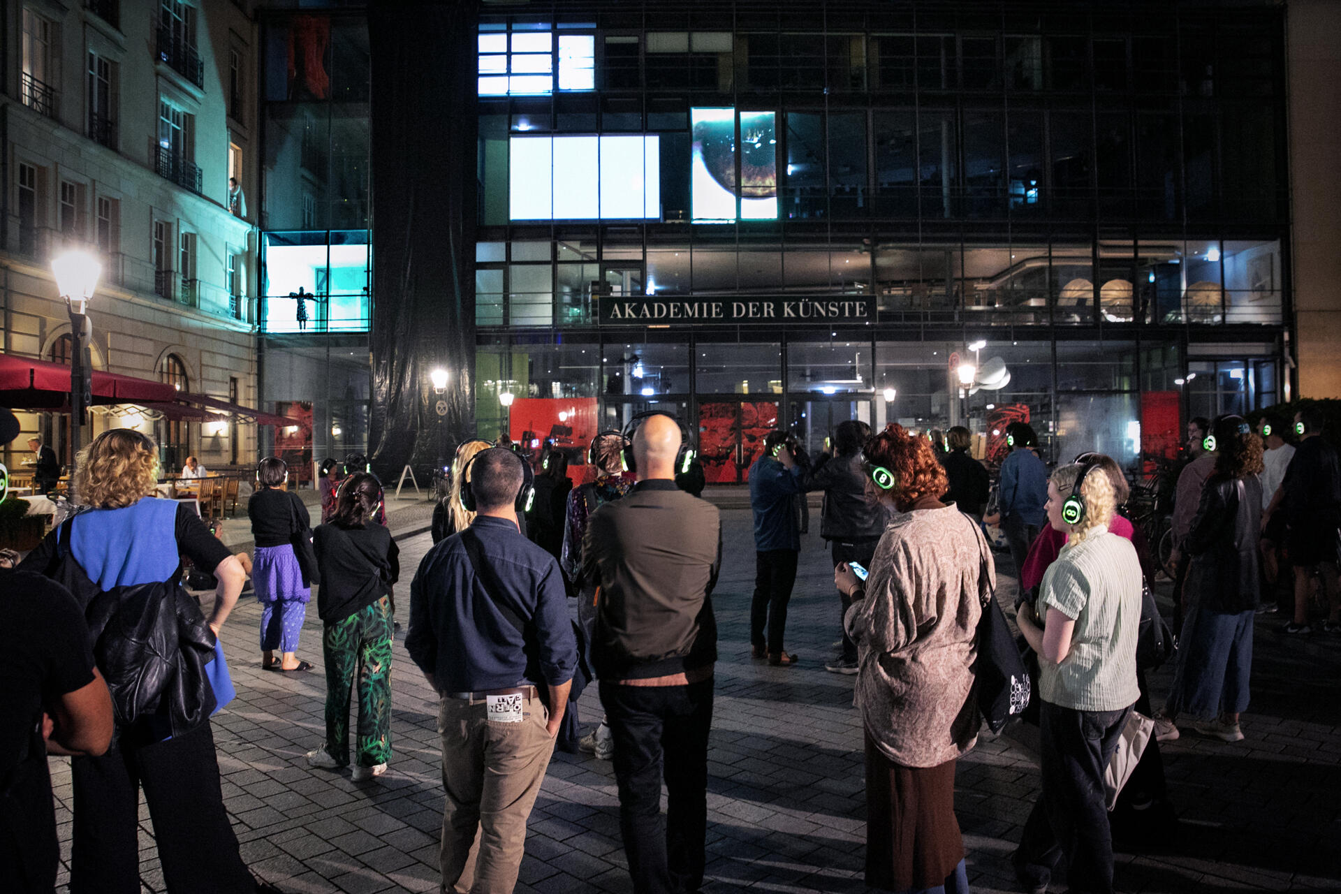 With a libretto based on texts by Jo Frank and Ulrich Holbein, the project is conceived as a three-dimensional transformation of Schönberg's twelve-tone technique into public space and opens up the perspective of a specially developed site-specific opera format that seeks to combine analog and digital theater perception. Between opera performance and film, music-theatrical exhibition and audio walk, scenic exploration and newly composed music, a hybrid format emerges that can be experienced in analog form inside the Akademie der Künste and in digital-visual form outside.